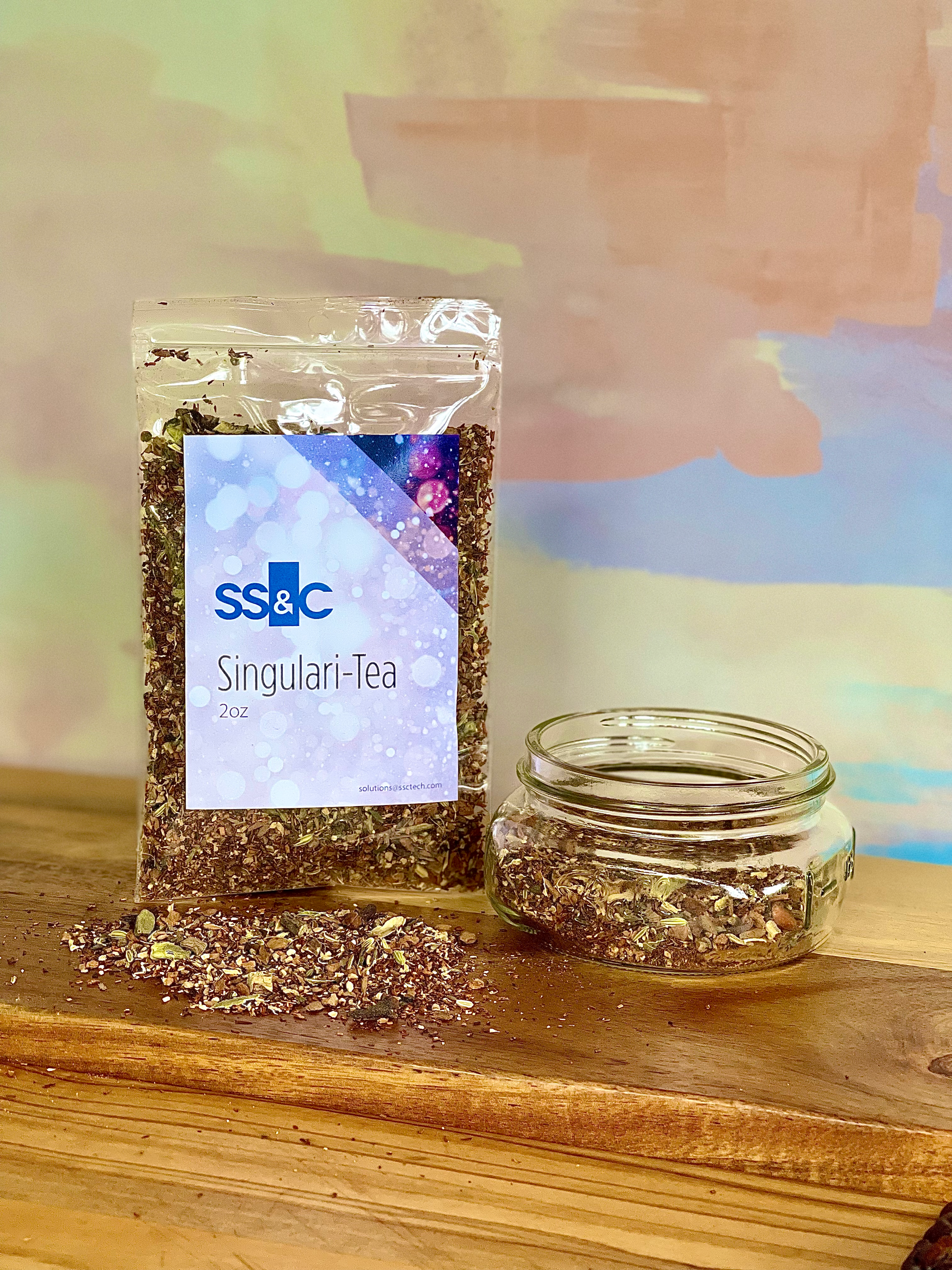This delicious blend of red rooibos tea with cinnamon, cardamon, star anise, clove, and a kiss of peppermint is an easy drinker perfect for fall and winter. It's strong and sweet, and works great as a traditional chai with milk or cream, or on its own. All organic, naturally caffeine-free, and 100% refreshing! Each bag is labeled with a custom SS&C "Singulari-Tea" label. Loose Leaf, 2 oz. Certified Kosher